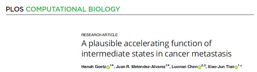 - Goetz, H., Melendez-Alvarez, J., Chen, L, Tian, X.-J. A Plausible Accelerating Function of Partial EMT States in Cancer Metastasis. PLOS Computational Biology. 2020. (Accepted)