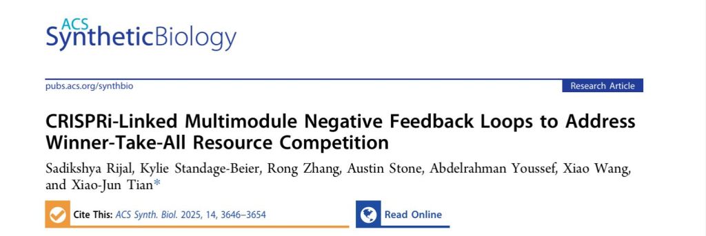 Sadikshya’s manuscript titled “CRISPRi-Linked Multi-Module Negative Feedback Loops to Address Winner-Take-All Resource Competition” is shared on BioRxiv.